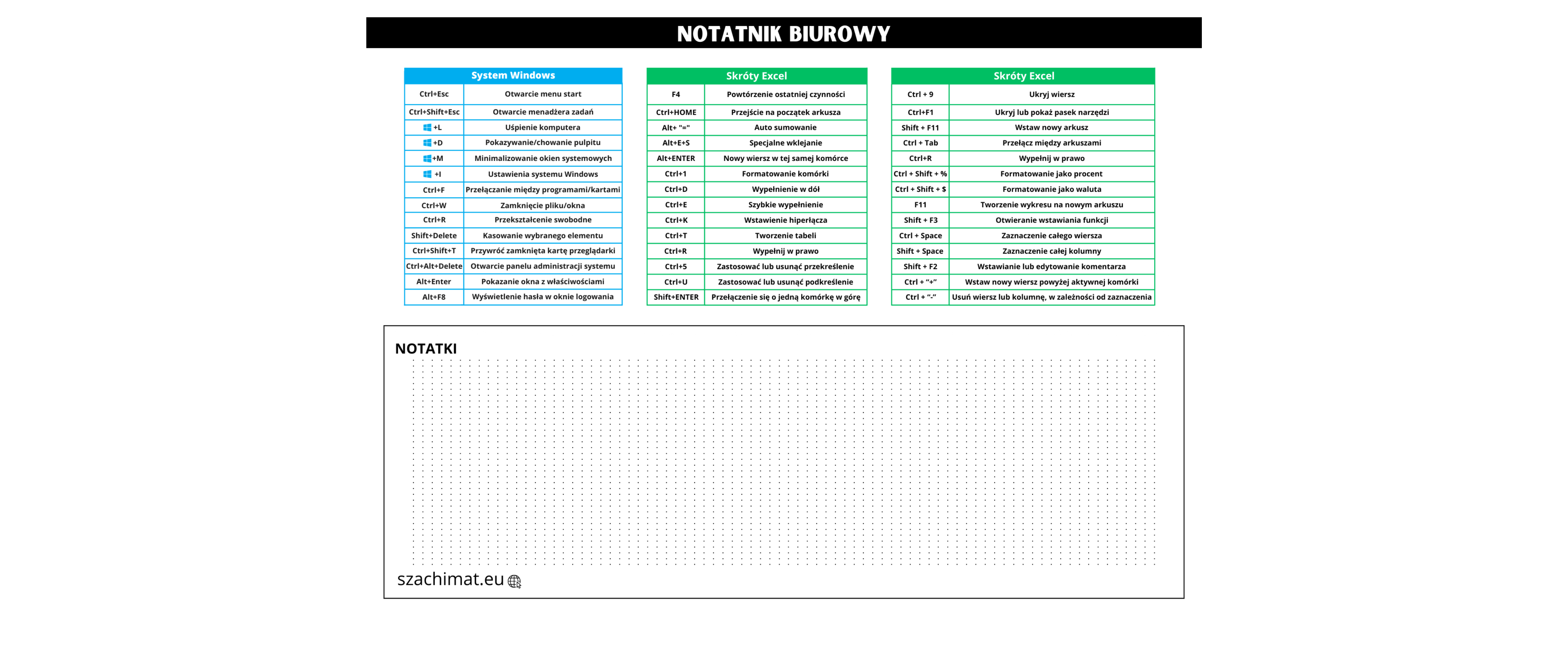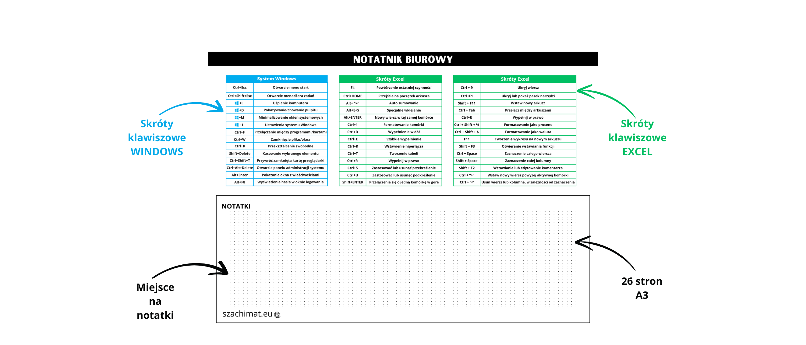 Notatnik A3 w formie biuwaru – 26 stron z najważniejszymi skrótami klawiszowymi do programu Excel i systemu Windows